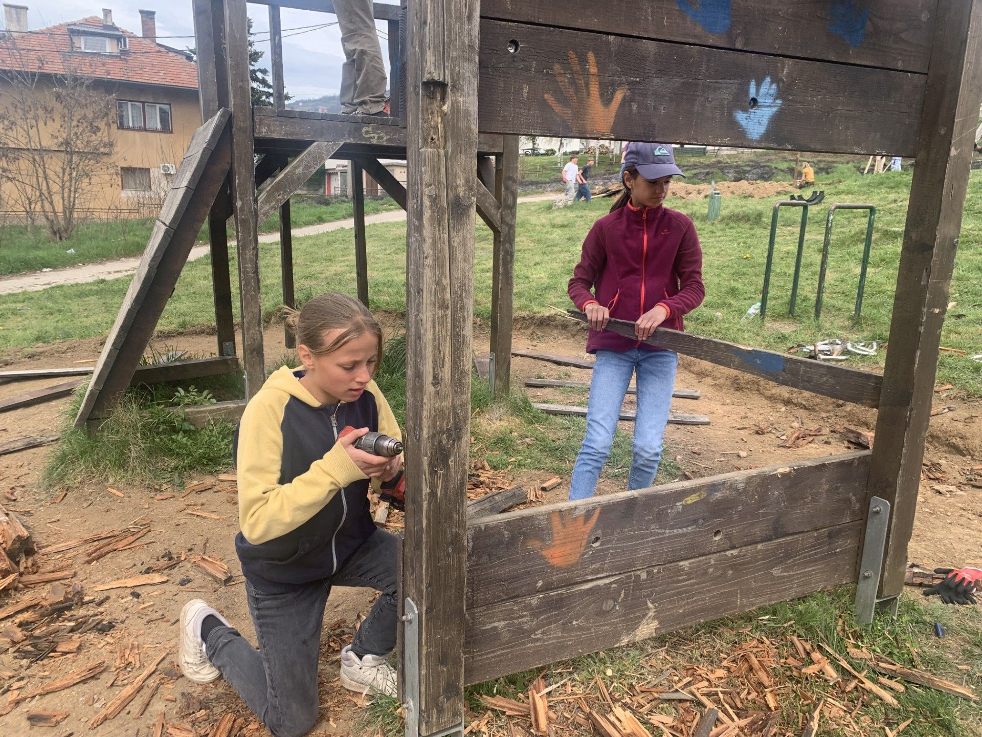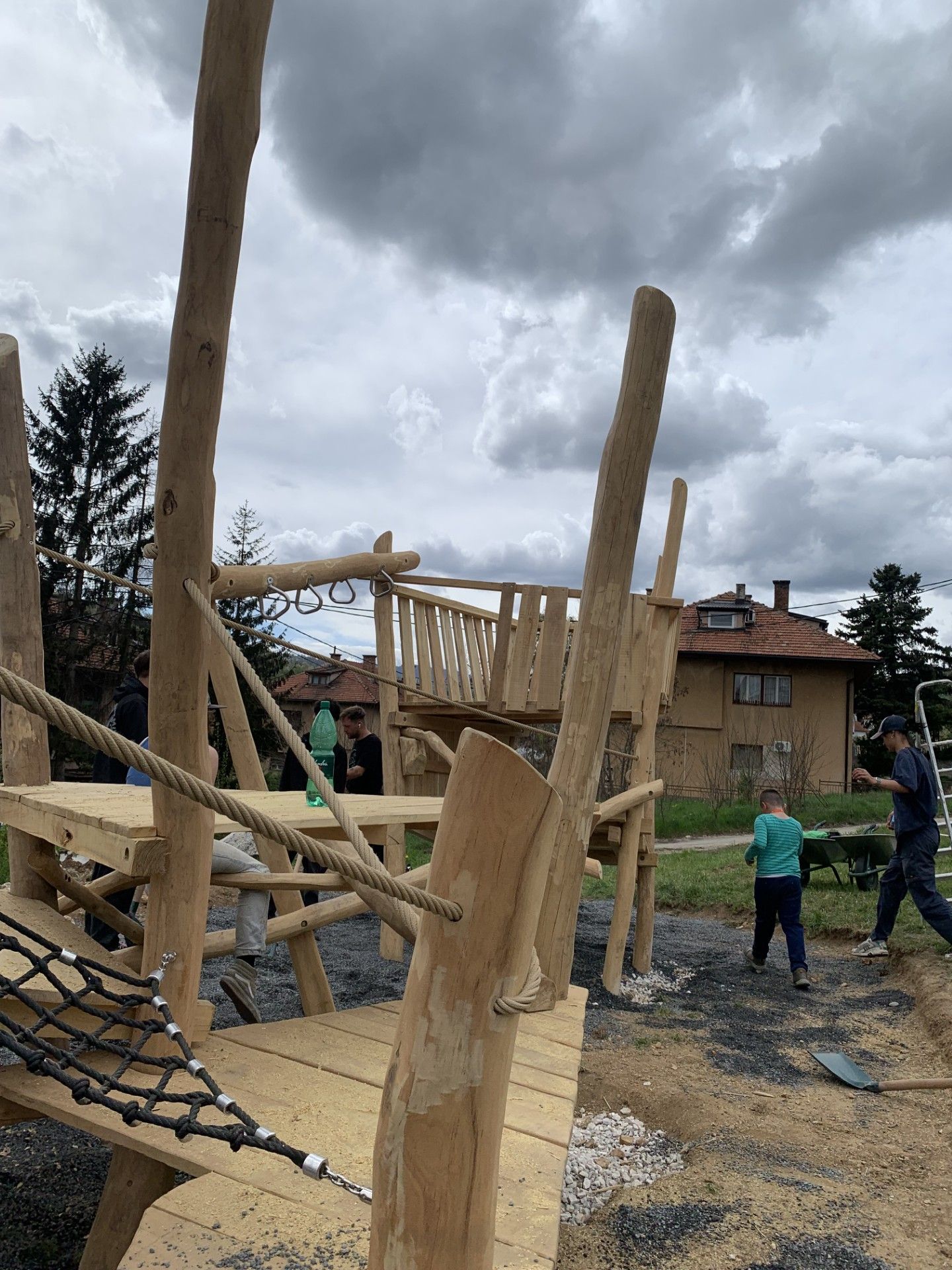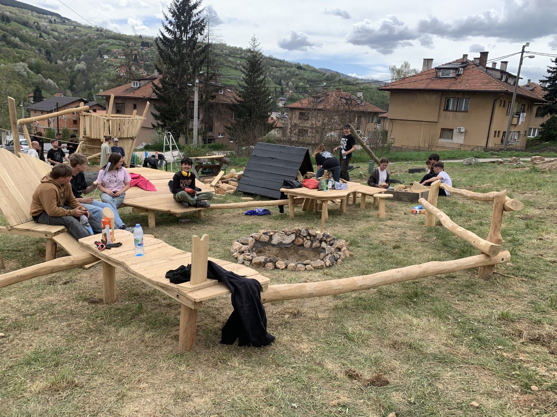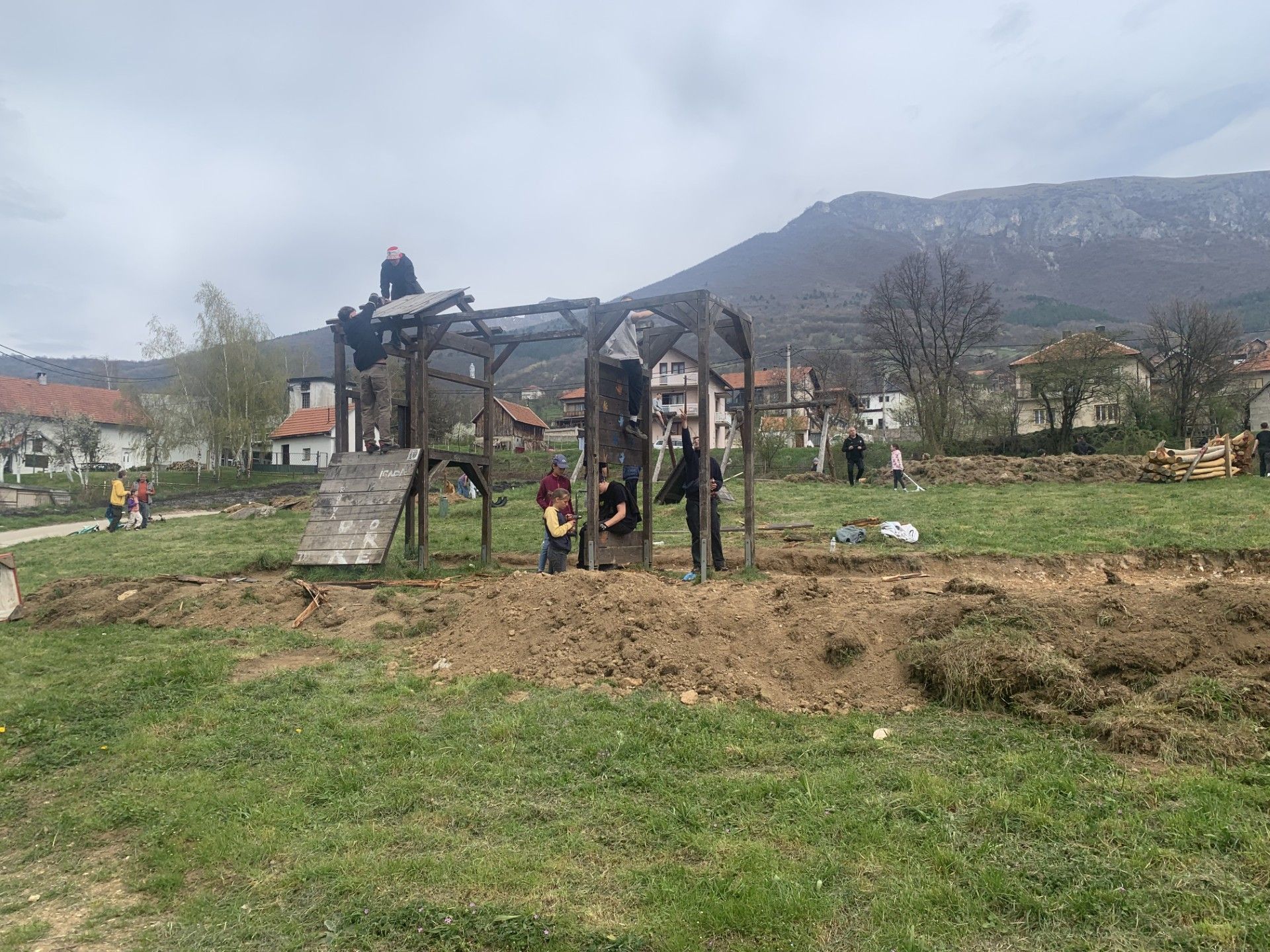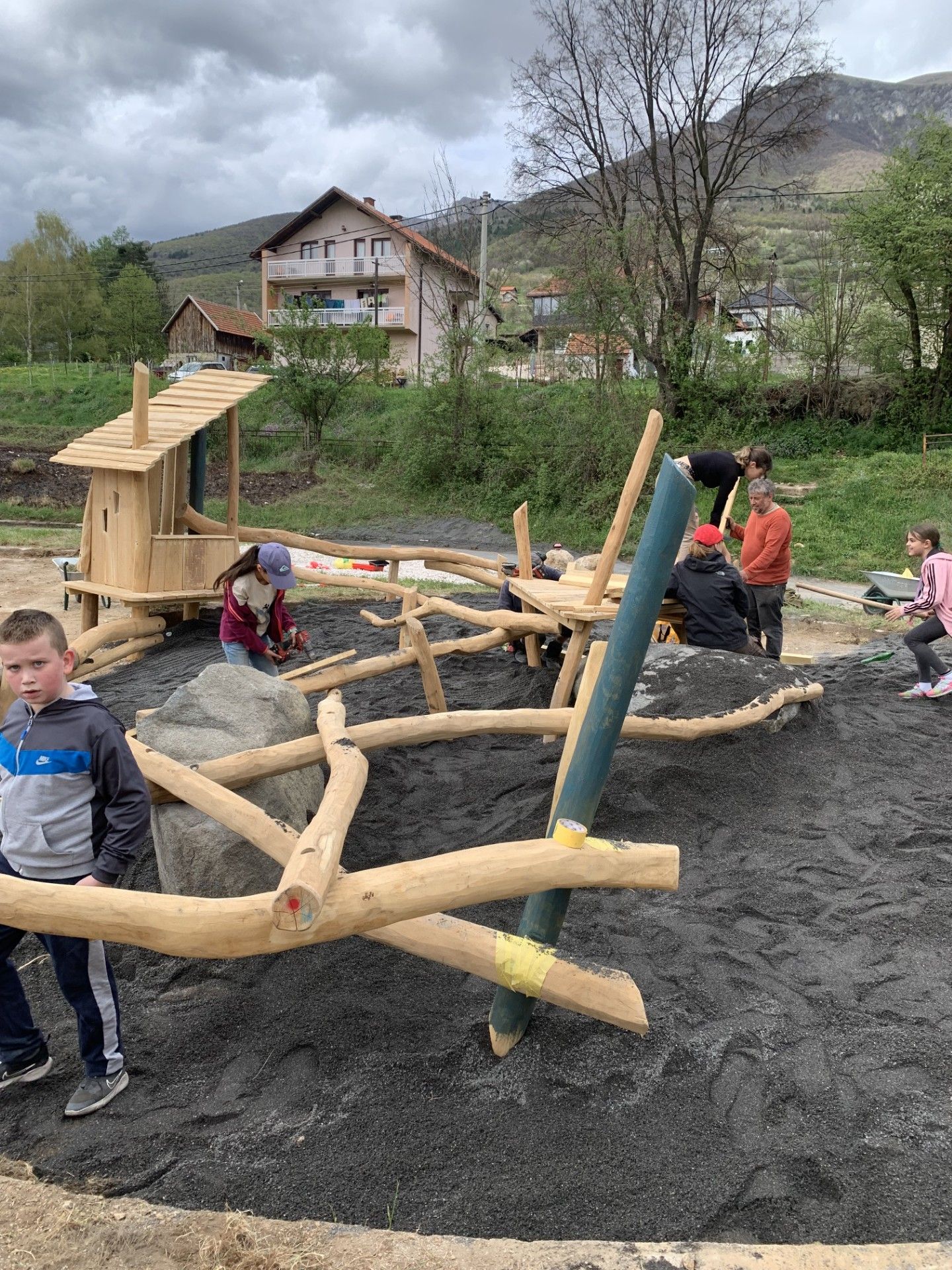 Die Arbeitstage waren erfüllt, anstrengend und voller intensiver Begegnungen, sowohl innerhalb unserer Gruppe als auch mit den Menschen, vor allem den vielen Kindern von Vorort. Und stetig wuchs dieser vielseitig bespielbare und nutzbare Platz zu einem Ort der Kreativität, des friedlichen Miteinanders, der Bewegung und des freien Spiels. Die fachlichen Bauanleiter waren mehr als erstaunt über die handwerklichen Fähigkeiten der Chaos-Kids, die fast ausschließlich in Eigenarbeit dieses Werk vollbrachten, so konnten sie literweise bosnischen Kaffee trinken und die Sonne genießen.