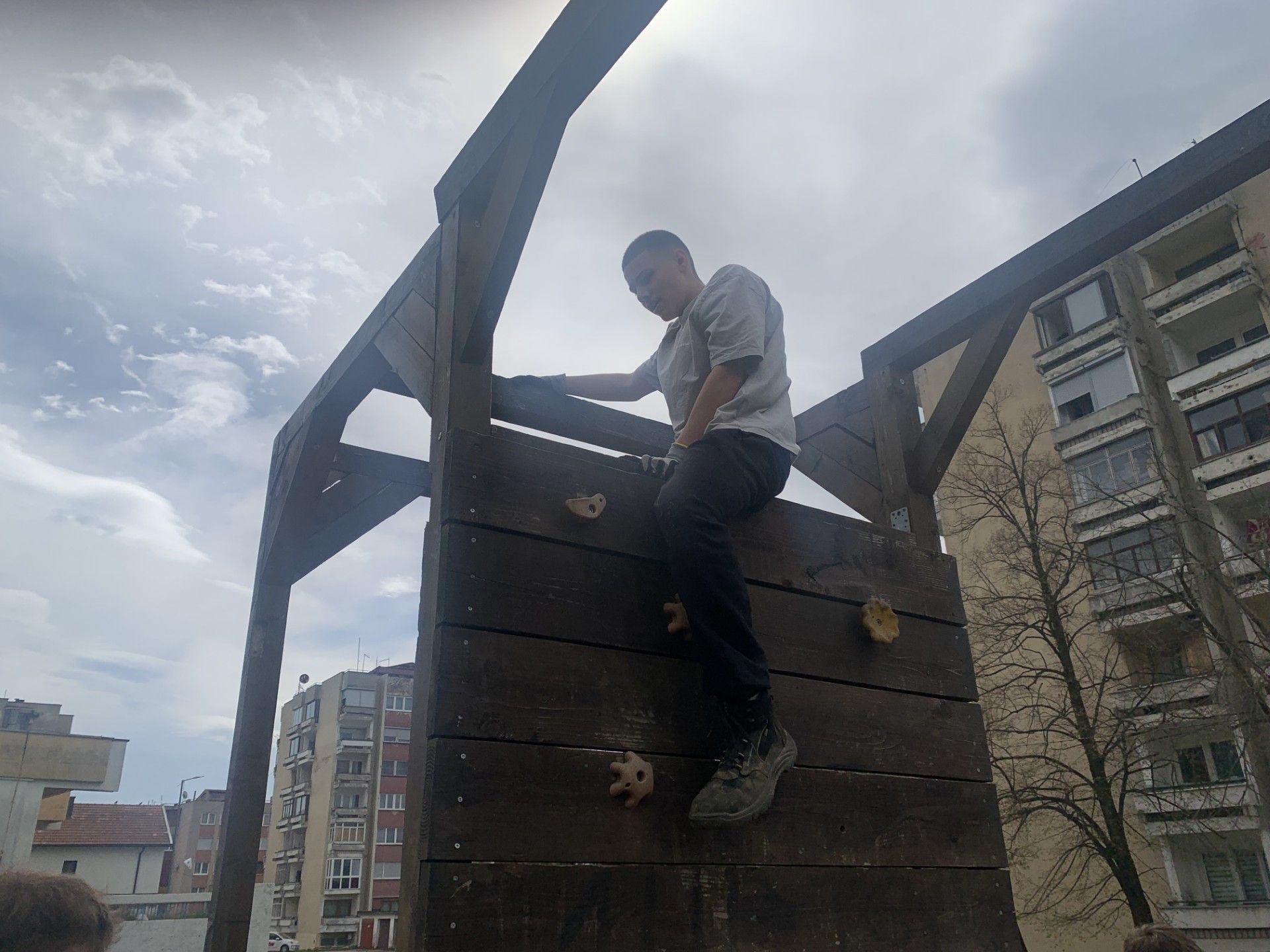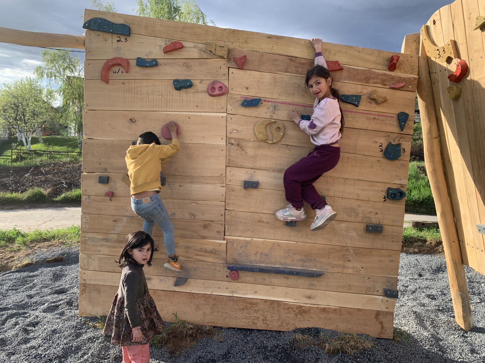 Diesmal hatten wir einige Jugendliche aus Jugendhilfeeinrichtungen dabei, die sofort und unmittelbar in die Gruppe integriert wurden und tüchtig mitarbeiteten. Auch die vielen Kinder aus den Wohnblocks waren ab Tag 1 voll mit dabei, halfen mit Berge von Holz hin und her zu tragen, oder schubkarrenweise Fallschutz zu verteilen, oder bespielten sofort jedes halbwegs feste Brett, oder Spielelement, das entstand.