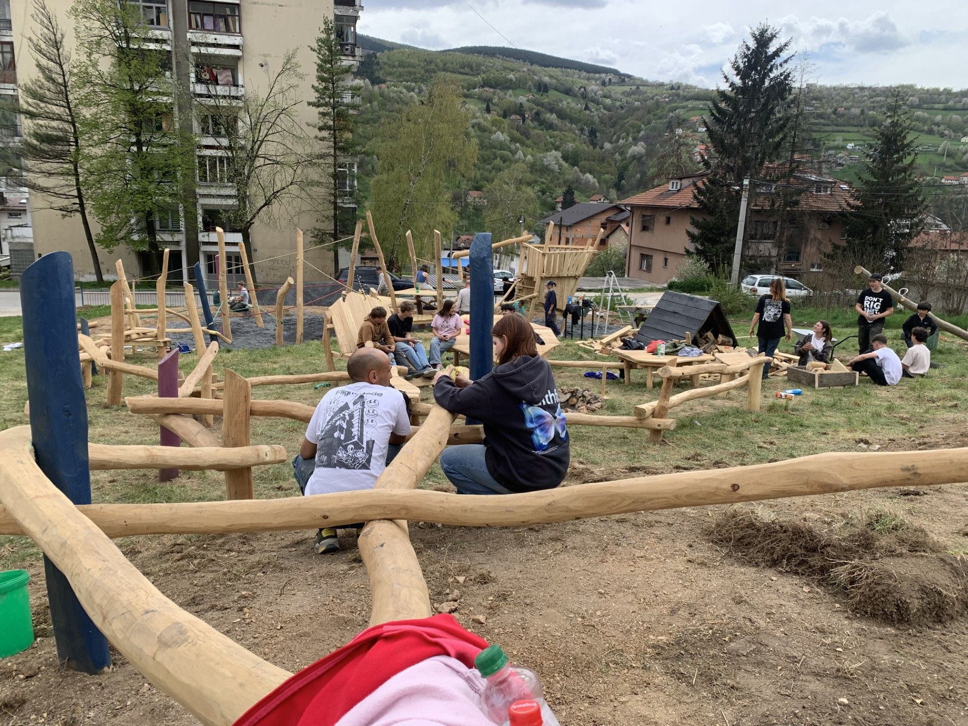 Als wir auf der Abfahrt nach Sarajevo noch einen Blick zwischen den Wohnblocks hindurch auf den Platz erhaschen konnten, brachen wir vor Freude über das Bild, dass uns dargeboten wurde, fast in Tränen aus: gefühlt hunderte von Kindern bevölkerten den Platz, alte Menschen saßen dabei und beobachteten lachend das lebendige Treiben. Was für ein Hochgefühl, bei der Erschaffung eines Ortes mitgewirkt zu haben, der hunderten von Menschen Freude, Spiel, Miteinander und vieles mehr ermöglicht!