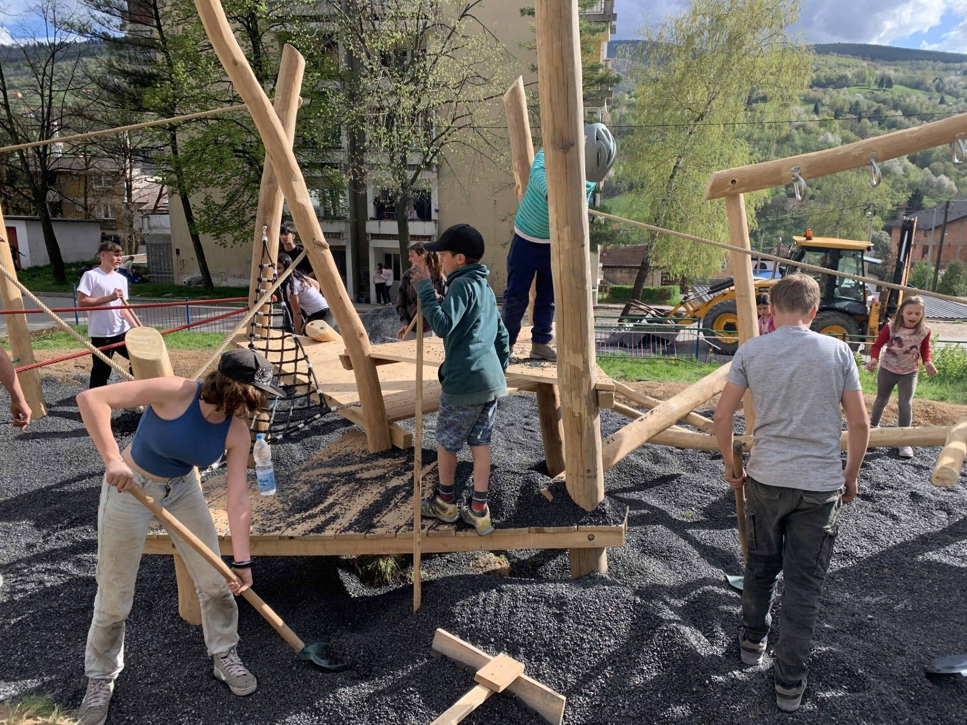 Zum zweiten Mal waren die Chaos-Kids dieses Jahr an Ostern in Bosnien unterwegs, um diesmal in der ehemals bosnischen Hauptstadt Travnik an einem öffentlichen Platz, zwischen noch zerschossenen Hochhaus-Wohnsiedlungen, einem neuen Kindergarten und einer Grundschule einen wunderbaren, vielseitigen Spiel- und Lebensraum zu erschaffen.
